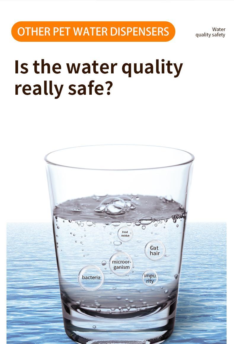 【Multiple Protection】Charging port of cat drinking fountain designed to be waterproof, eliminating concerns about water damage. Ultra-quiet water pump operates silently, ensuring it doesn't disturb you or your pet's rest